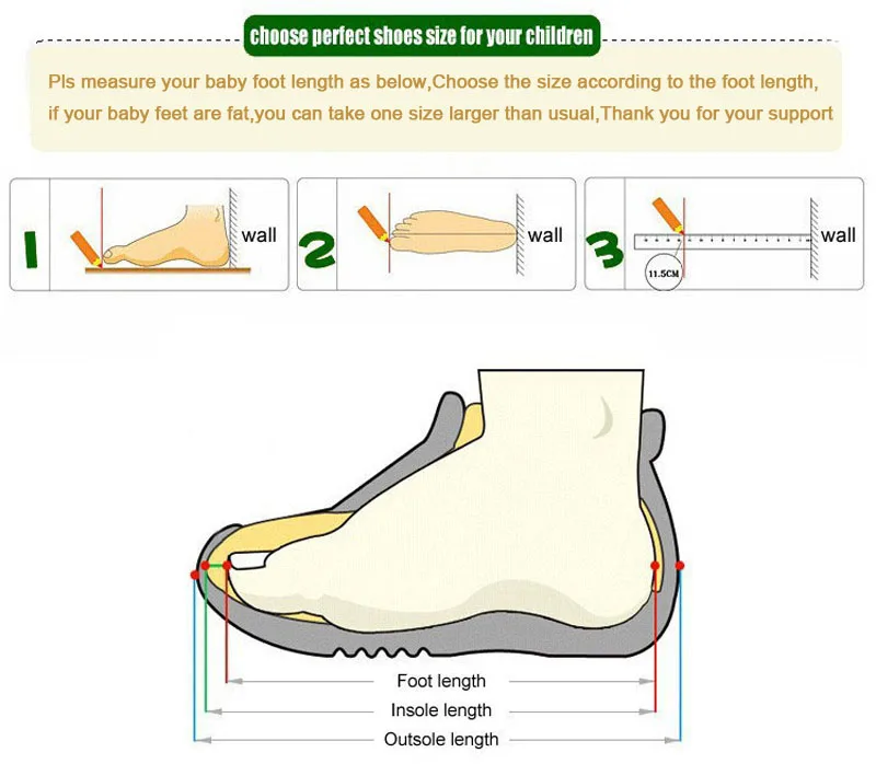 1.Please measure your baby foot length by ruler first, then pick the correct size according to above size table by foot length. If your baby feet are fat, you can pick one size larger than usual.