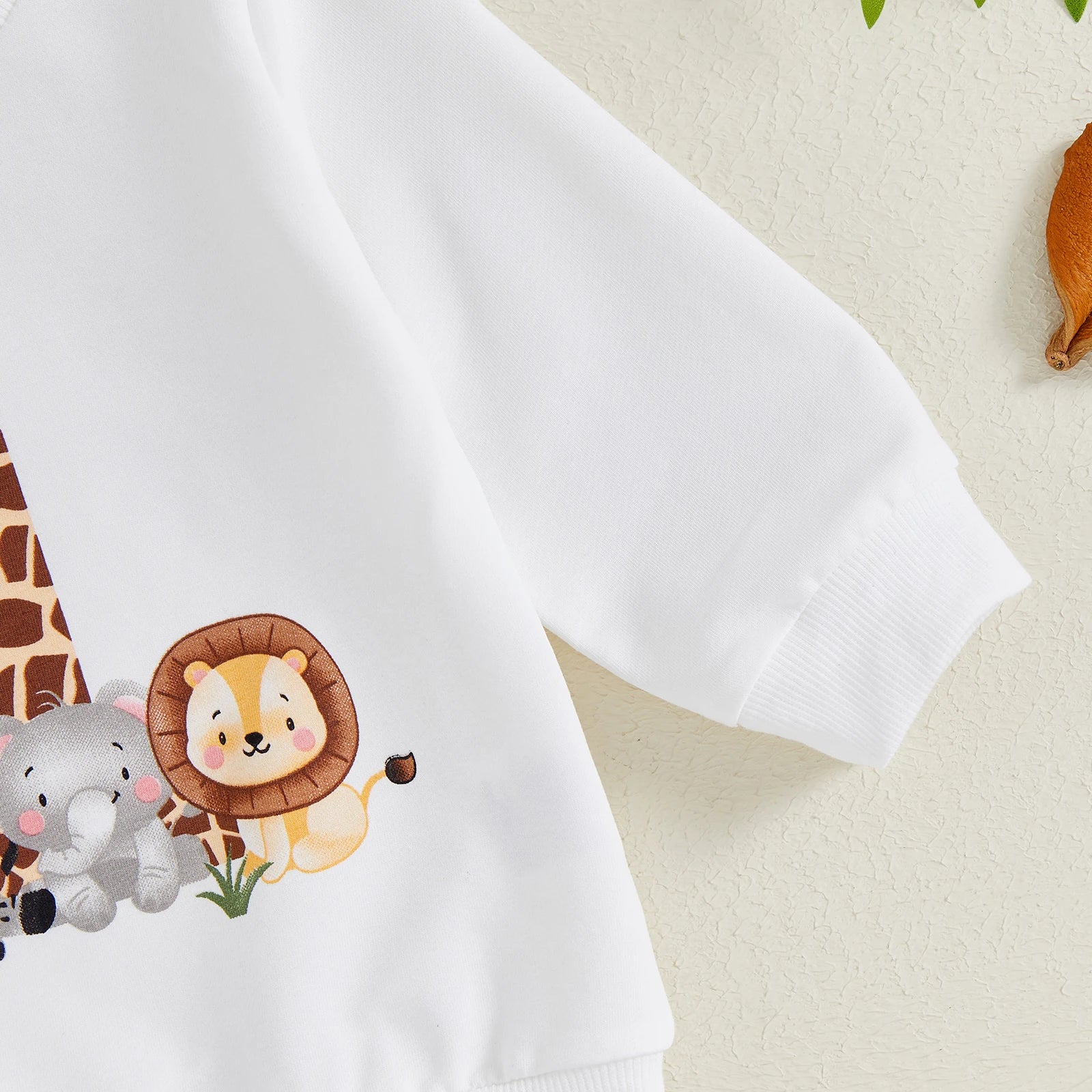 Baby Boy First Birthday Outfit, Animal Print Long Sleeve Sweatshirt Elastic Waist Pants 2 Piece Set for Fall