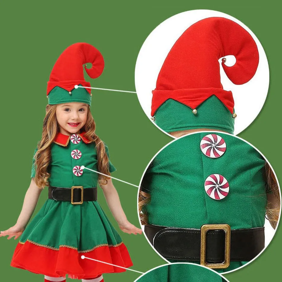 Items Name: Kids Adult Christmas Clothing Set Kids Tops Pants Hat Belt Children Xmas Clothes Baby Boy Girl Birthday Outfit Elves Costume